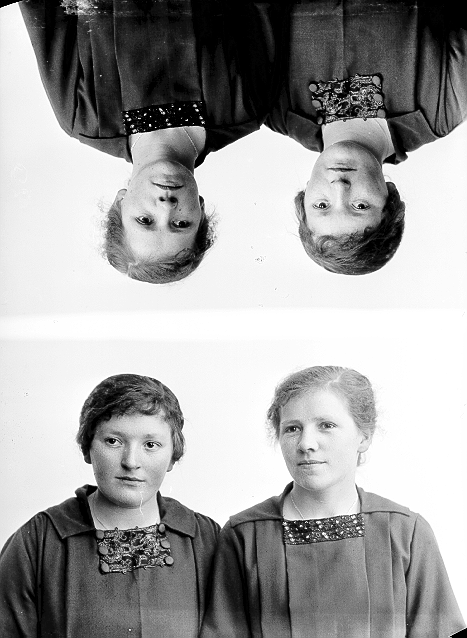 To kvinner, mørke kjoler, halvfigur