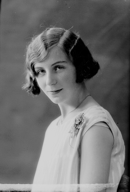 Ung kvinne, lys ermeløs kjole, halvfigur