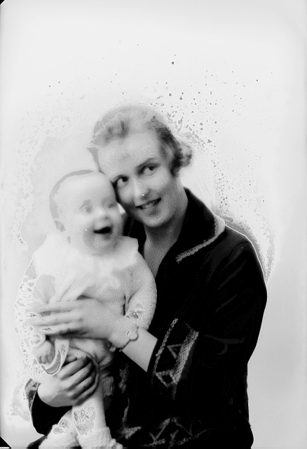 Mor og sønn, 1, liten gutt, lystrøye, sittende på mors arm, helfigur, 2, kvinne, mørk kjole, sittende, halvfigur
