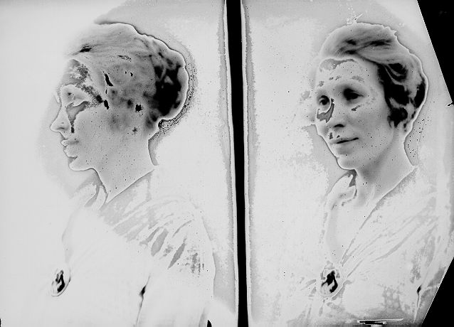 Kvinne, lys bluse, halvfigur, en eksponering i profil