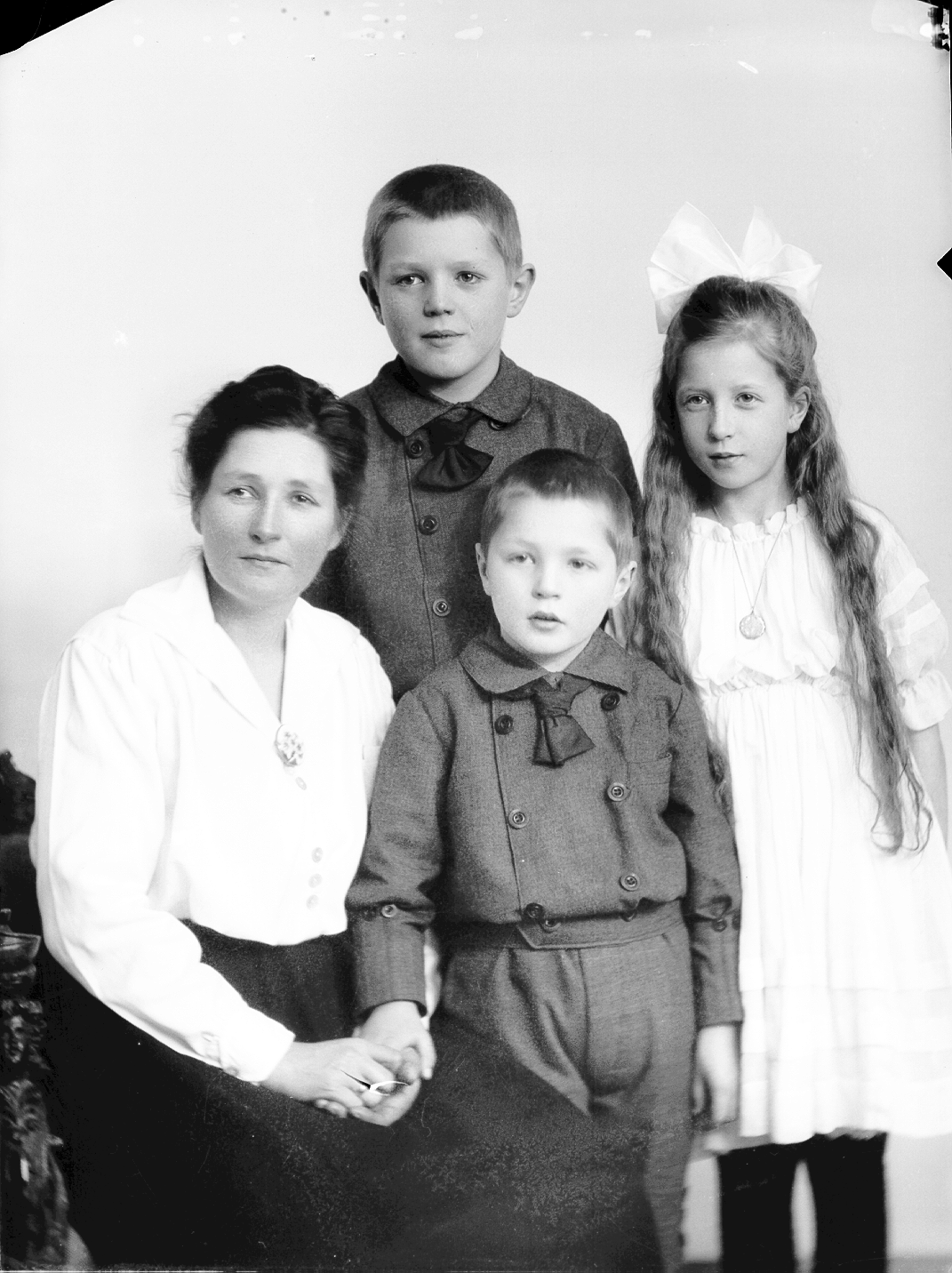 dame, 3 barn, halvfigur, sløyfe