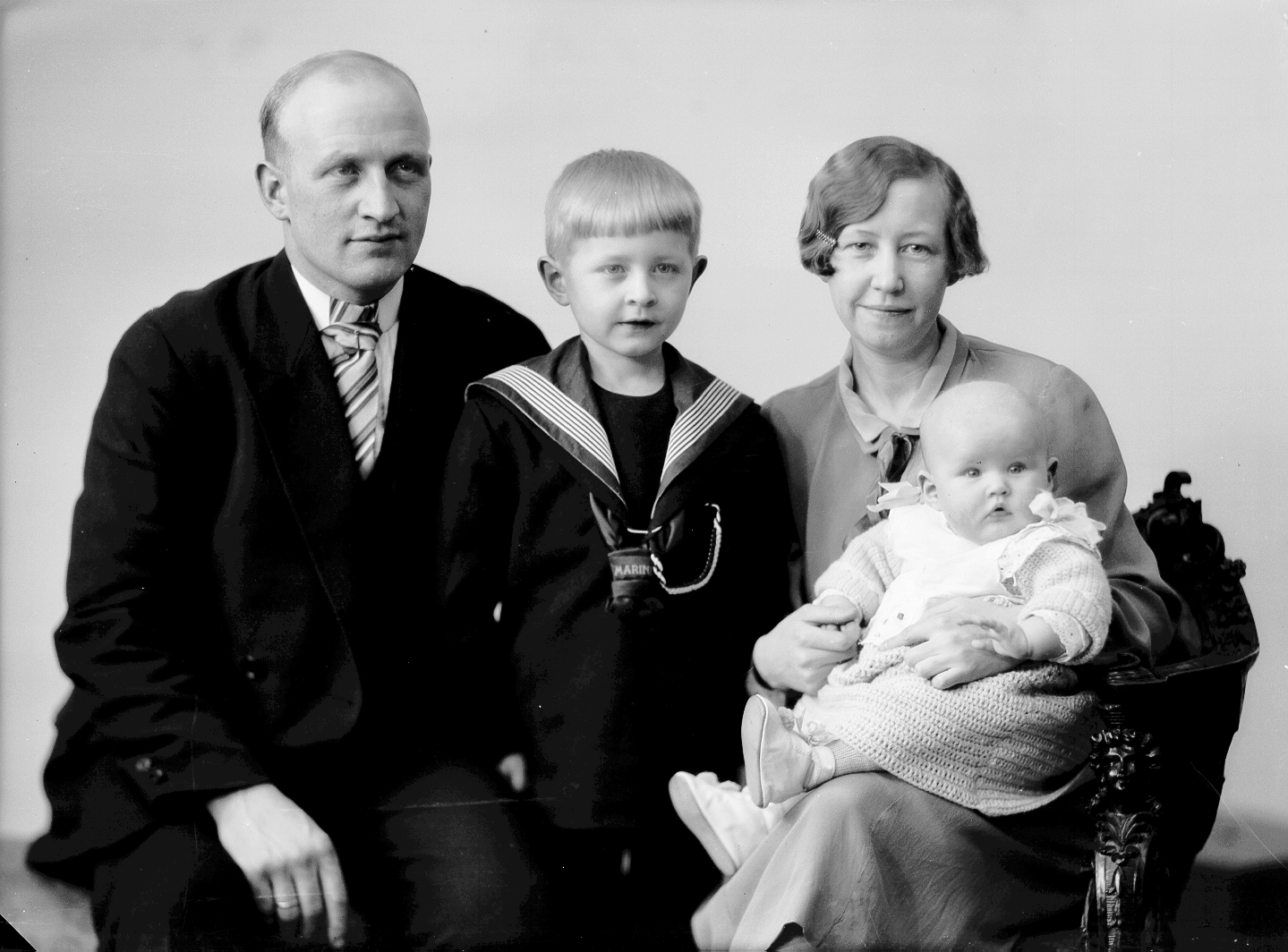 mann, dame, gutt, baby, halvfigur, matrosdress, barneklær