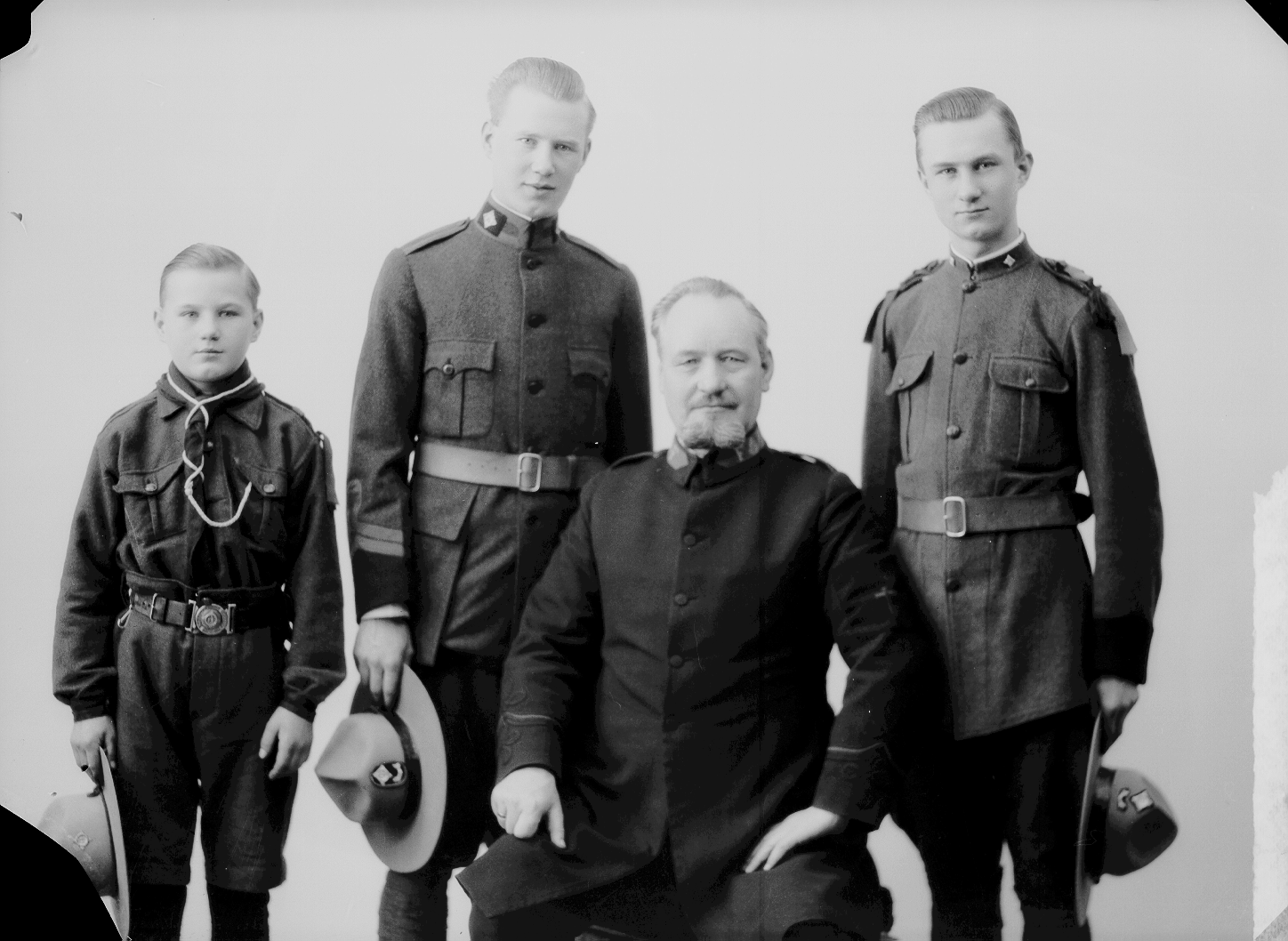 Portrett av Hr Skjoldhammer med 3 sønner (speiderdrakte)