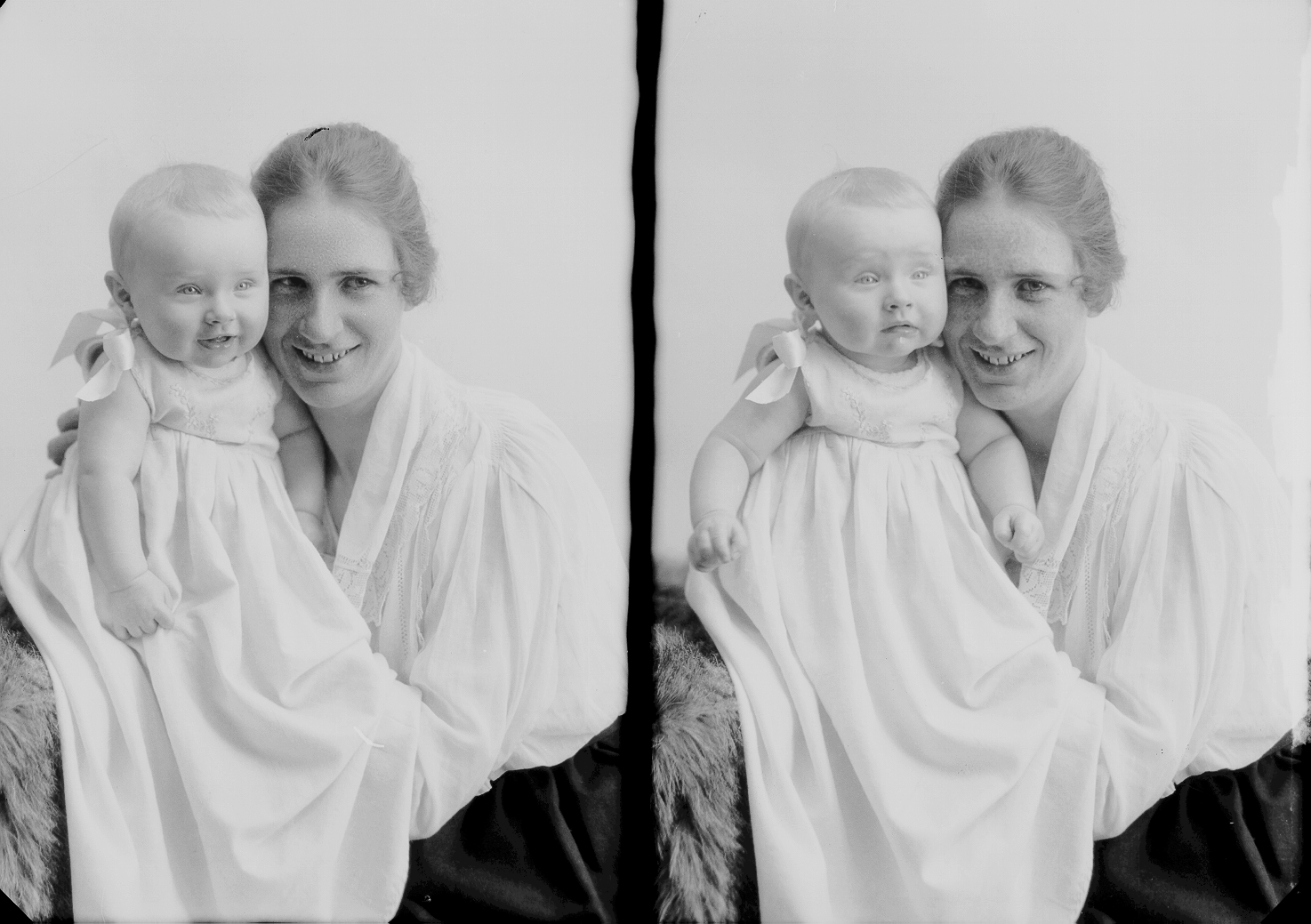 dame, liten gutt, halvfigur, barneklær, dåpskjole