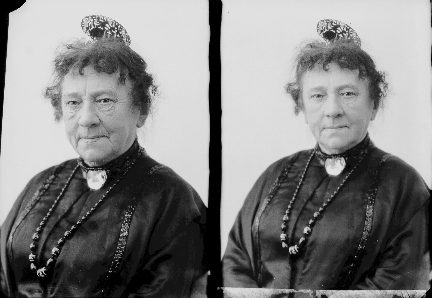 Dame. Hårpynt. Hårkam. Perlekjede. Halssmykke. Biser. Halvfigur
