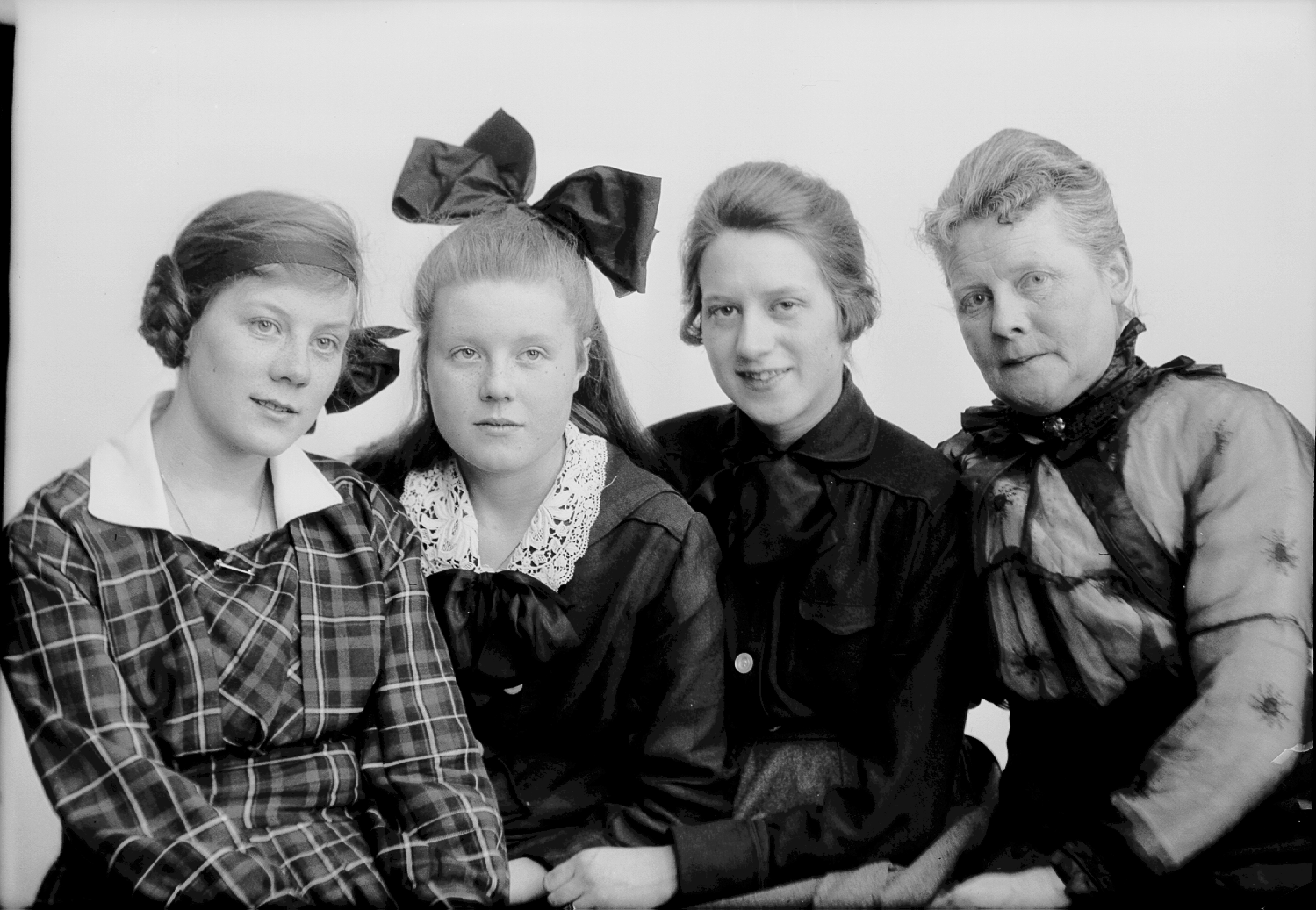 Mor. 3 døtre. Hårsløyfe. Hårbånd. Halvfigur