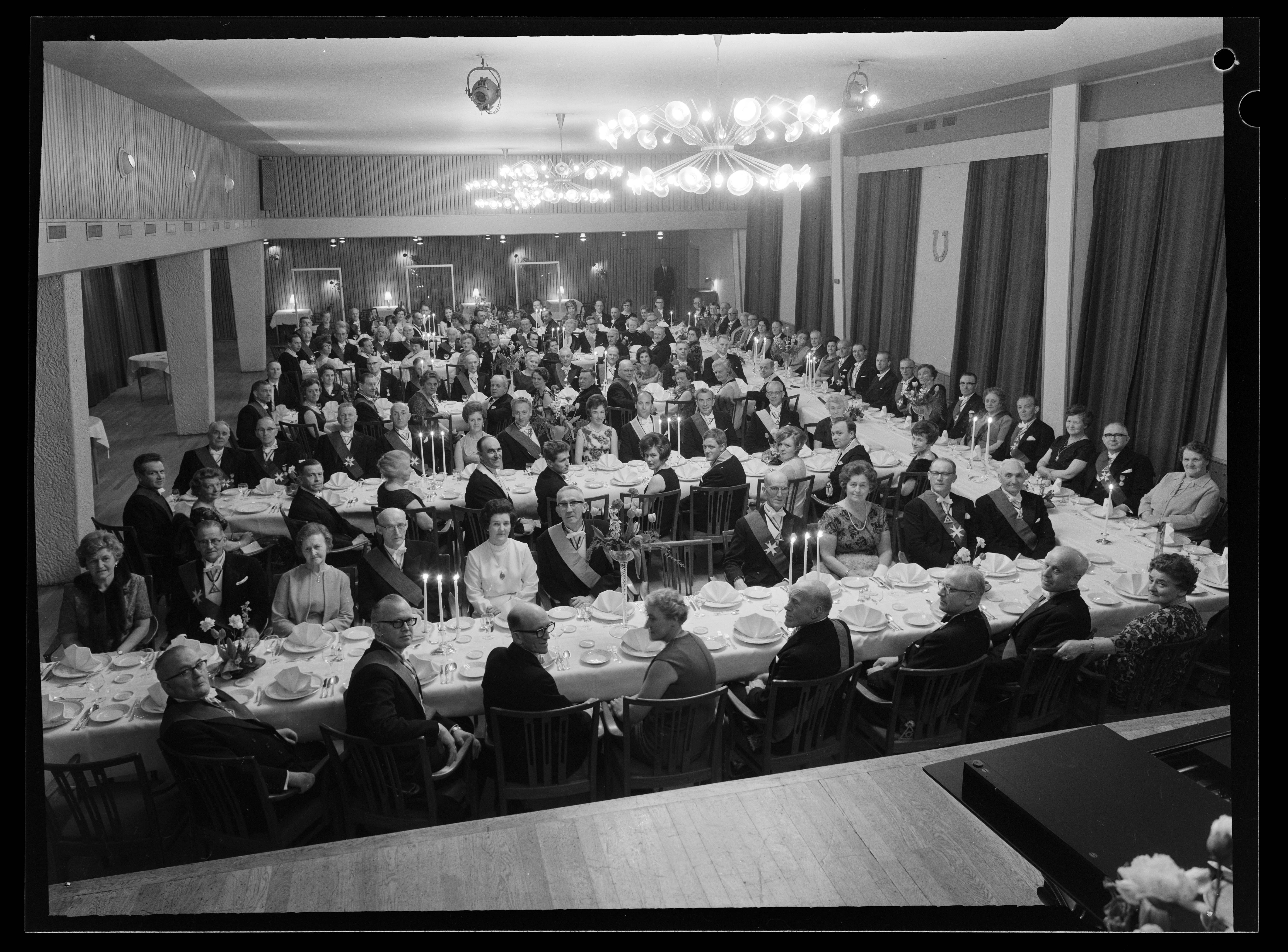 Gruppebilder av medlemmer av losje Kong Sverre, fest på Prinsen