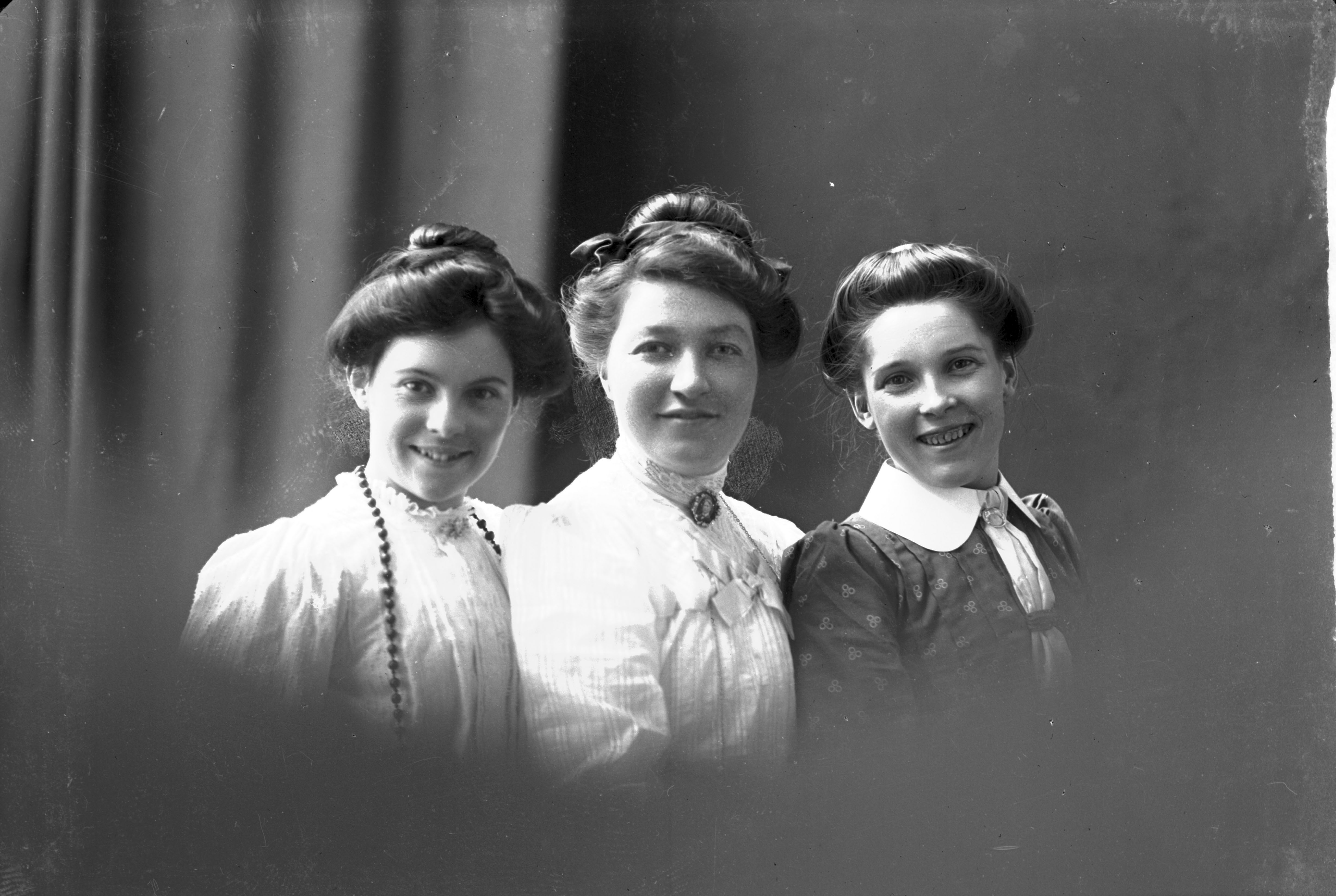 Tre damer, halvfigur. Fra venstre: Marie, Gunhild og Signe.